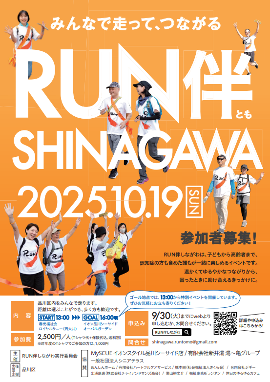 RUN伴しながわは、認知症の方々と誰もが一緒に楽しめるイベントです。